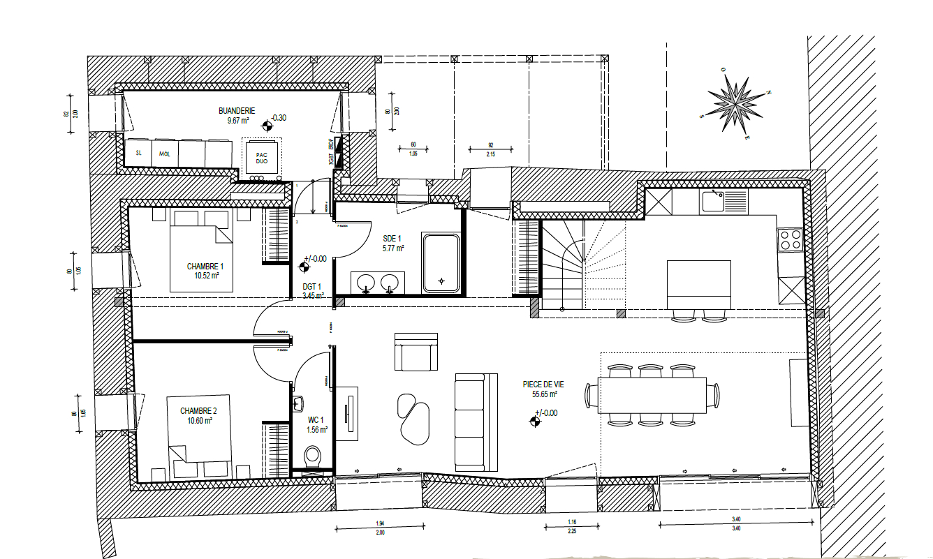 Projet de rénovation pour illustration (bien vendu libre) pour une surface de 137m² avec grenier et vide sur séjour. Détails du projet sur demande, le permis est prêt à être déposé.