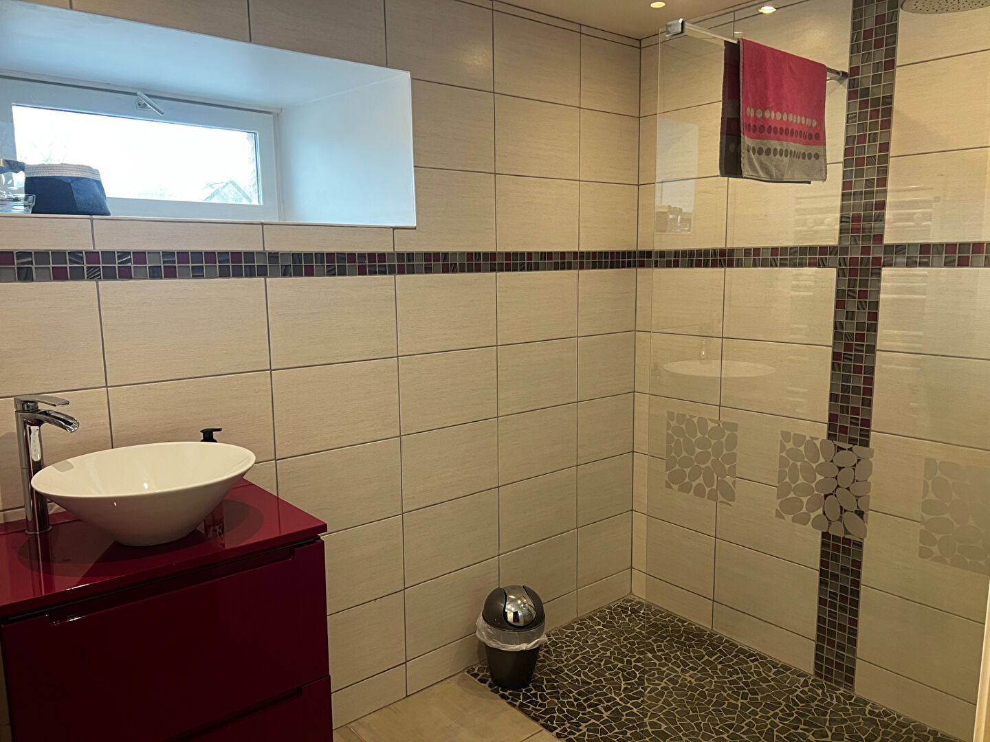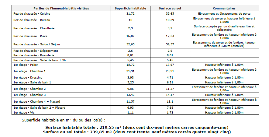A l'étage : un palier, une SDB, 4 chambres dont 2 avec placard et 1 avec SDE privative, un dégagement.