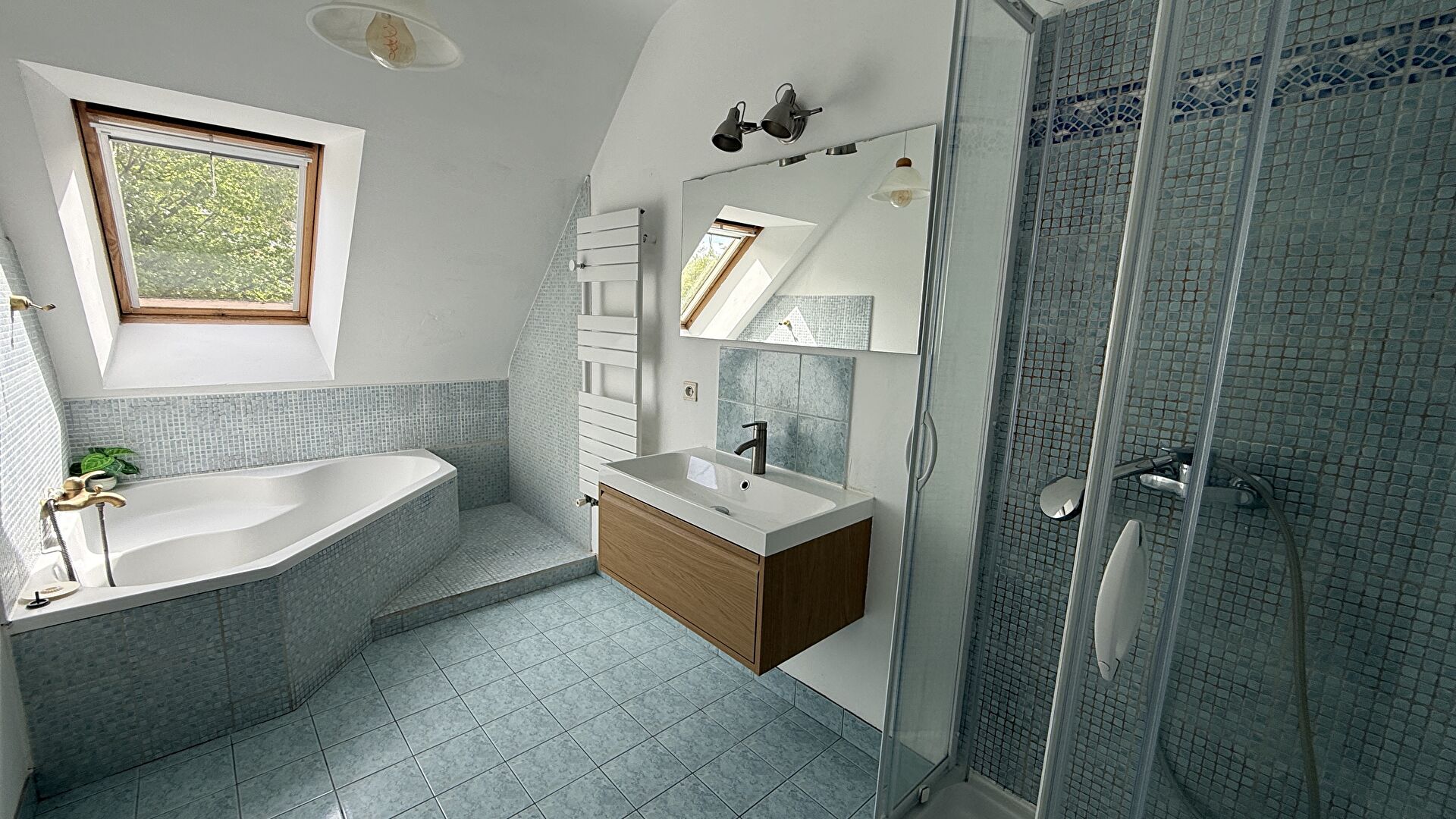 - A l'étage : un pallier, 4 chambres dont 2 avec placard, un wc, une SDB avec baignoire et douche.